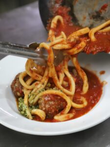 Es habitual que el lugar se complete en horas pico, lo que habla de su popularidad entre locales que buscan pastas bien hechas en un contexto informal.