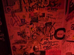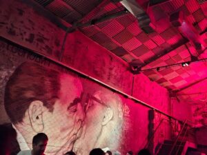 Bar con estética industrial “post-muro”, patio y happy hour; ambiente fuerte en coctelería, musica y djs.